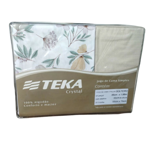 - O Jogo de Lençol Teka Crystal é composto por 100% algodão, garantindo um toque natural, respirabilidade e conforto para uma boa noite de sono.